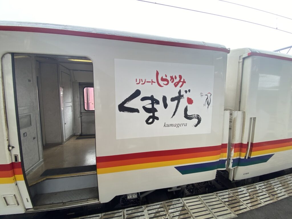 リゾートしらかみの列車に揺られながら、何かいい方法はないだろうかと思案していたところ、私の隣に座っている方が、「東能代駅からバスが出るらしいよ」と教えてくれました。